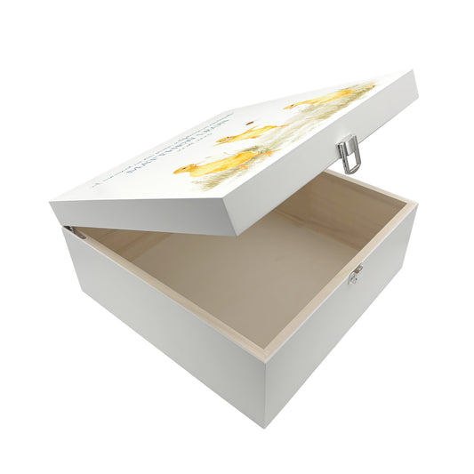Memorial Baby Ducklings Keepsake White Wooden Box