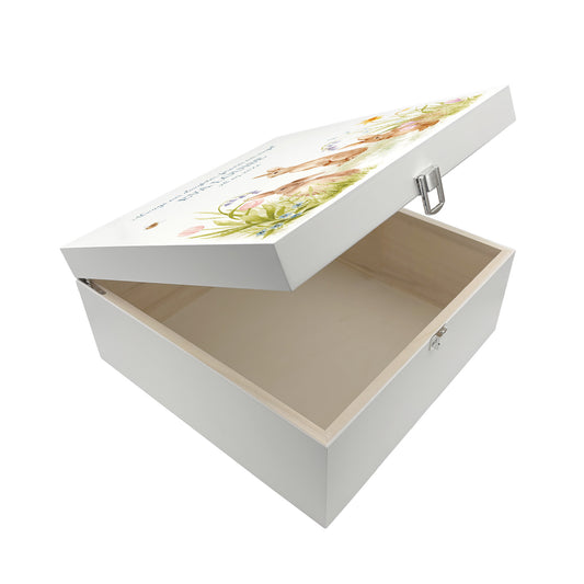 Memorial Blooming Bunnies Keepsake White Wooden Box
