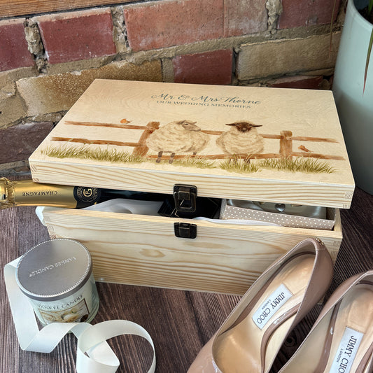 Personalised Sheep Couple Wedding Large Wooden Gift Box