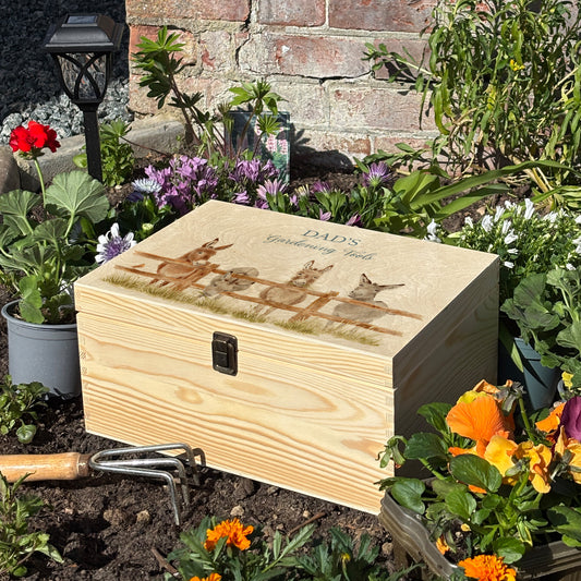 Personalised Baby Bunnies Large Wooden Baby Gift Box