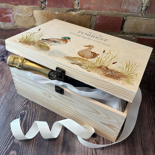 Personalised Duck Couple Wedding Large Wooden Gift Box