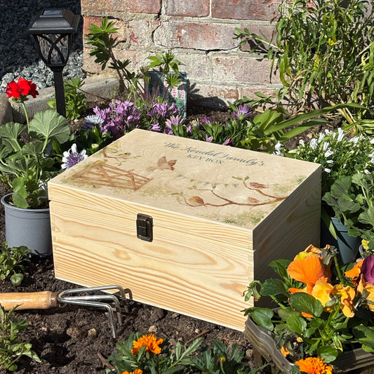 Personalised Happy Hedgerow New Home Large Wooden Gift Box