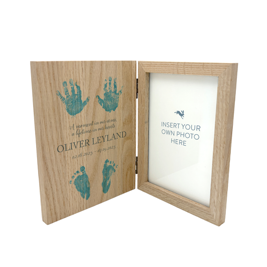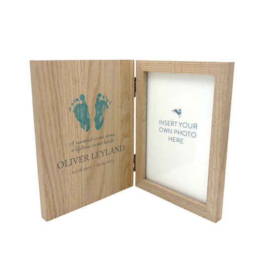 Personalised Oak Memorial Hand and Footprint Photo Frame 5"x7"