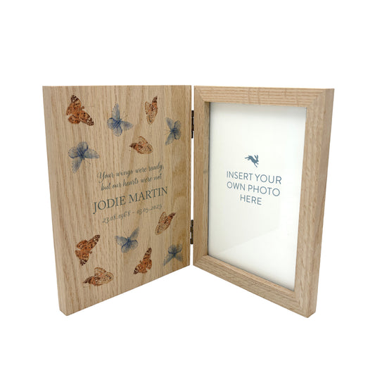 Personalised Oak Memorial Butterfly Photo Frame 5"x7"