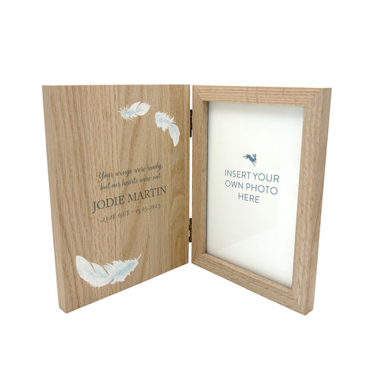Personalised Oak Memorial Feather Photo Frame 5"x7"