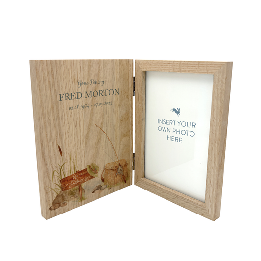 Personalised Oak Memorial Gone Fishing Photo Frame 5"x7"
