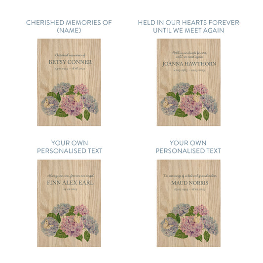 Personalised Oak Memorial Hydrangea Photo Frame 5"x7"