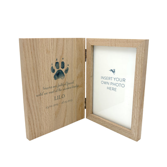 Personalised Oak Memorial Paw Print Photo Frame 5"x7"