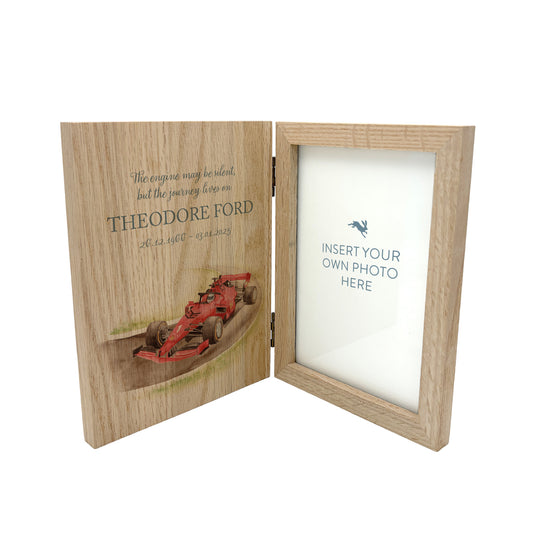 Personalised Oak Memorial Gone Racing Photo Frame 5"x7"