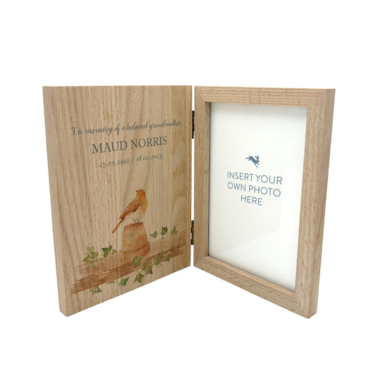 Personalised Oak Memorial Robin Photo Frame 5"x7"