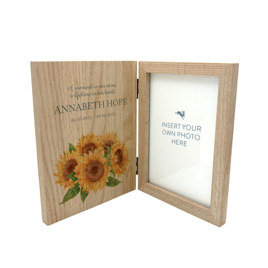 Personalised Oak Memorial Sunflowers Photo Frame 5"x7"