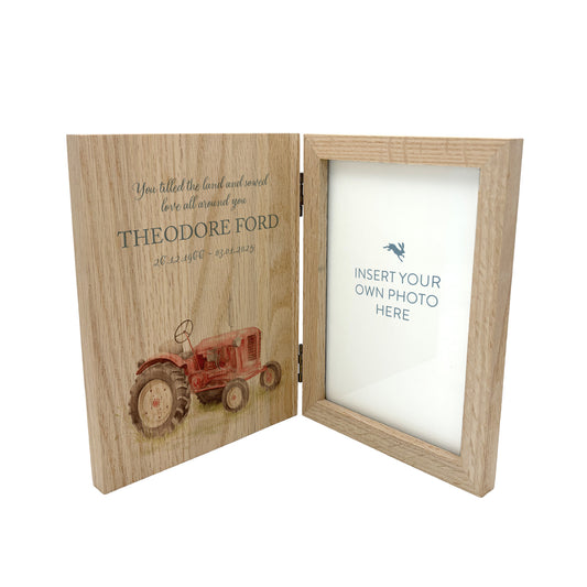 Personalised Oak Memorial Tractor Photo Frame 5"x7"