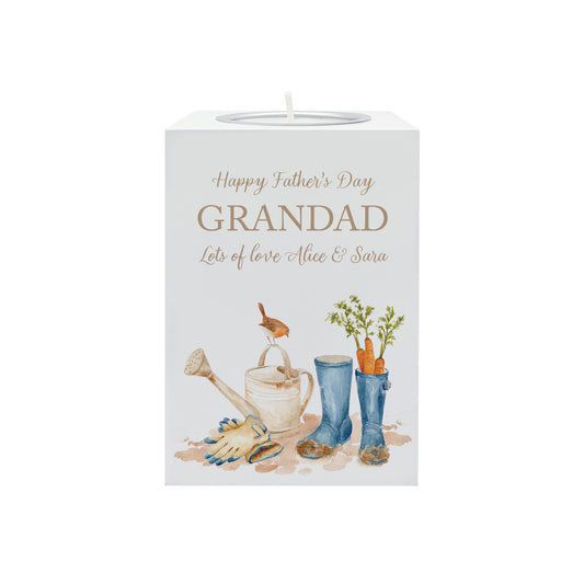 Personalised Gone Gardening "Memorial" Tall White Luxury Tealight Holder