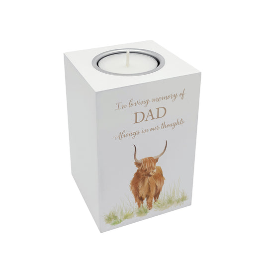 Personalised Hairy Highlands Tall White Luxury Tealight Holder