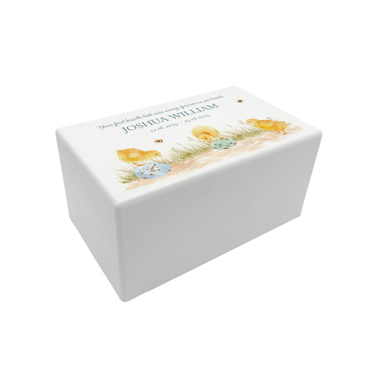 Memorial Baby Chicks Rectangular White Wooden Urn
