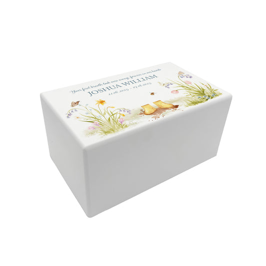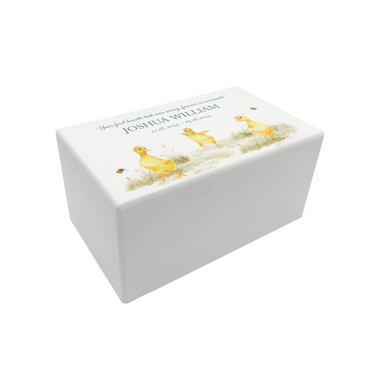 Memorial Baby Ducklings Rectangular White Wooden Urn