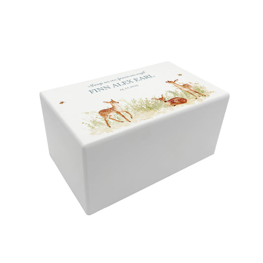 Memorial Baby Fawn Rectangular White Wooden Urn
