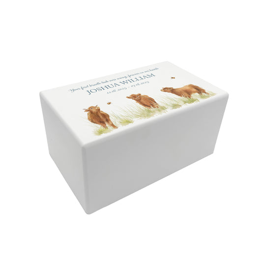 Memorial Highland Cow Rectangular White Wooden Urn