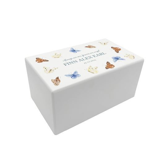 Memorial Butterflies Rectangular White Wooden Urn