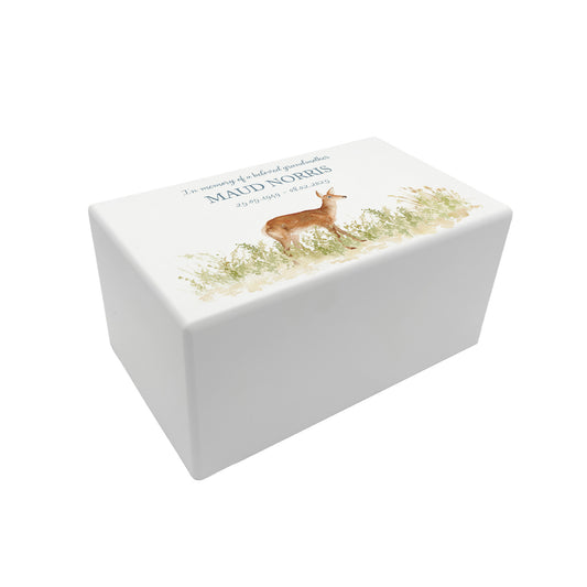 Memorial Doe Rectangular White Wooden Urn