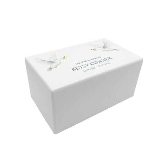 Memorial Dove Rectangular White Wooden Urn