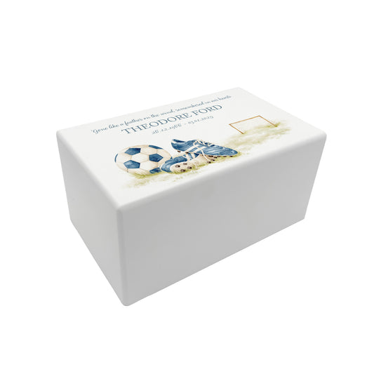 Memorial Football Rectangular White Wooden Urn