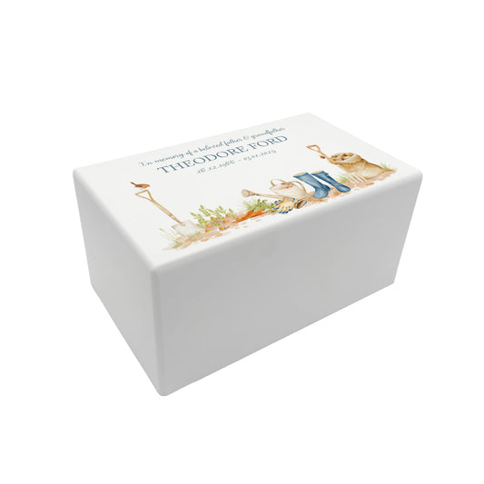 Memorial Gone Gardening Rectangular White Wooden Urn