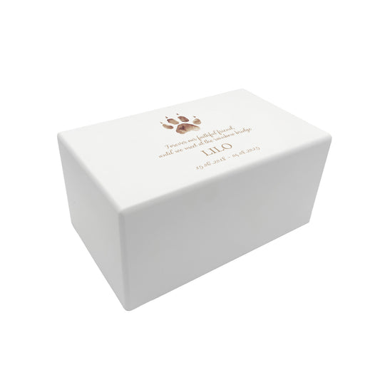 Memorial Paw Print Rectangular White Wooden Urn