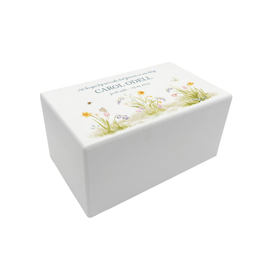 Memorial Spring Flowers Rectangular White Wooden Urn
