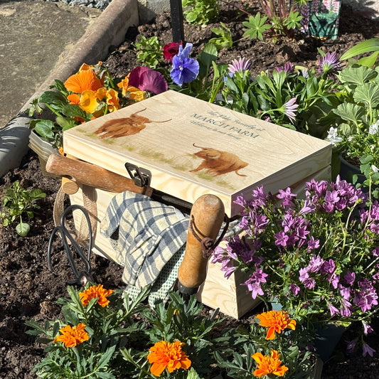 Personalised Highland Cow Keepsake Medium Wooden Gift Box