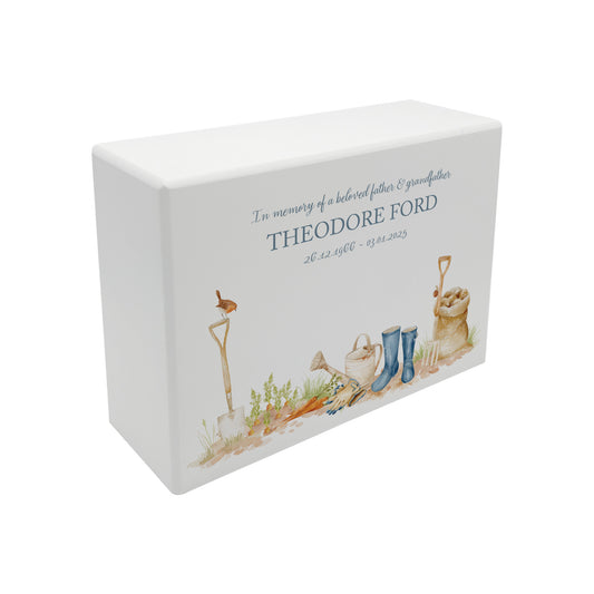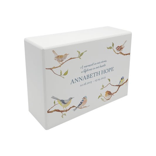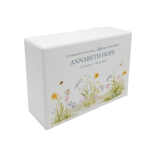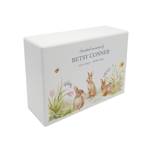 Memorial Blooming Bunnies Tall White Wooden Urn