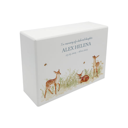 Memorial Baby Fawn Rectangular White Wooden Urn