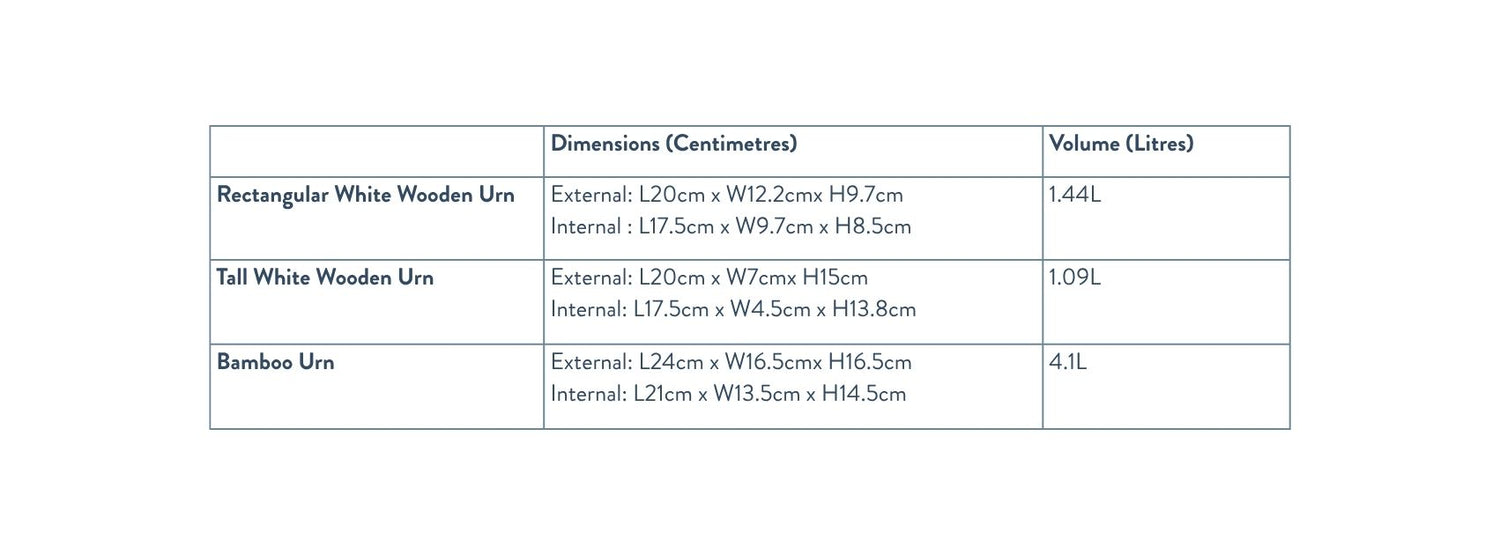 They are available in a range of sizes, please contact your Funeral Director for advice on which size urn to choose.