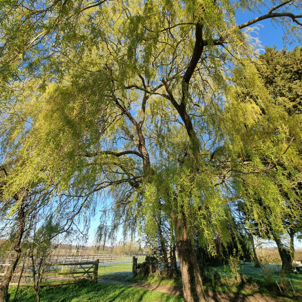 The beautiful old willow tree watches over the farm. Its branches shelter squirrels, and the bunnies play beneath it. Sometimes the horses even snack on the leaves as they walk past!